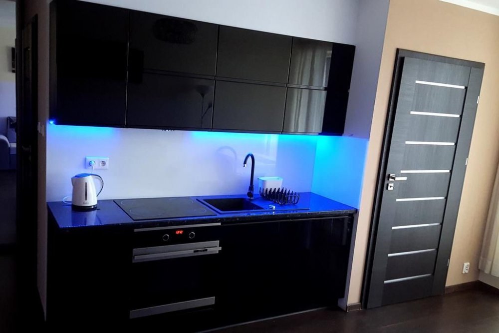 W apartamencie znajduje się jadalnia oraz aneks kuchenny wyposażony w piekarnik, lodówkę i płytę kuchenną. Dla Gości przygotowano pościel i