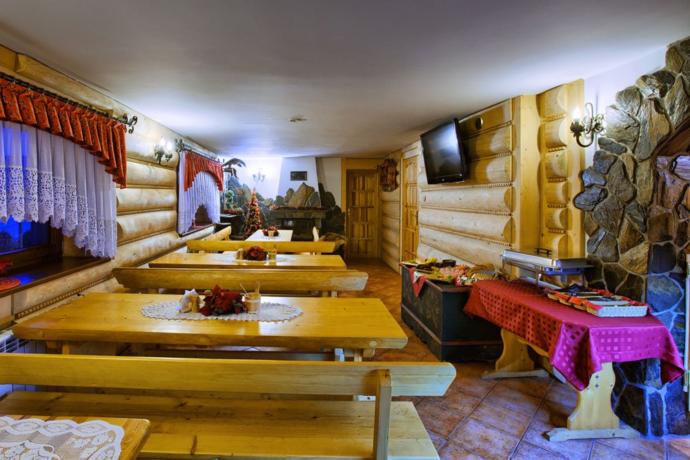 - Stylową salę góralską z kominkiem i telewizją cyfrową