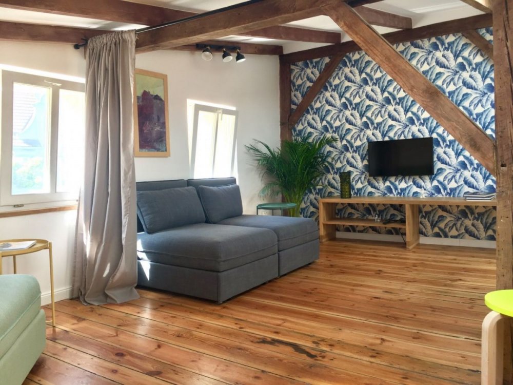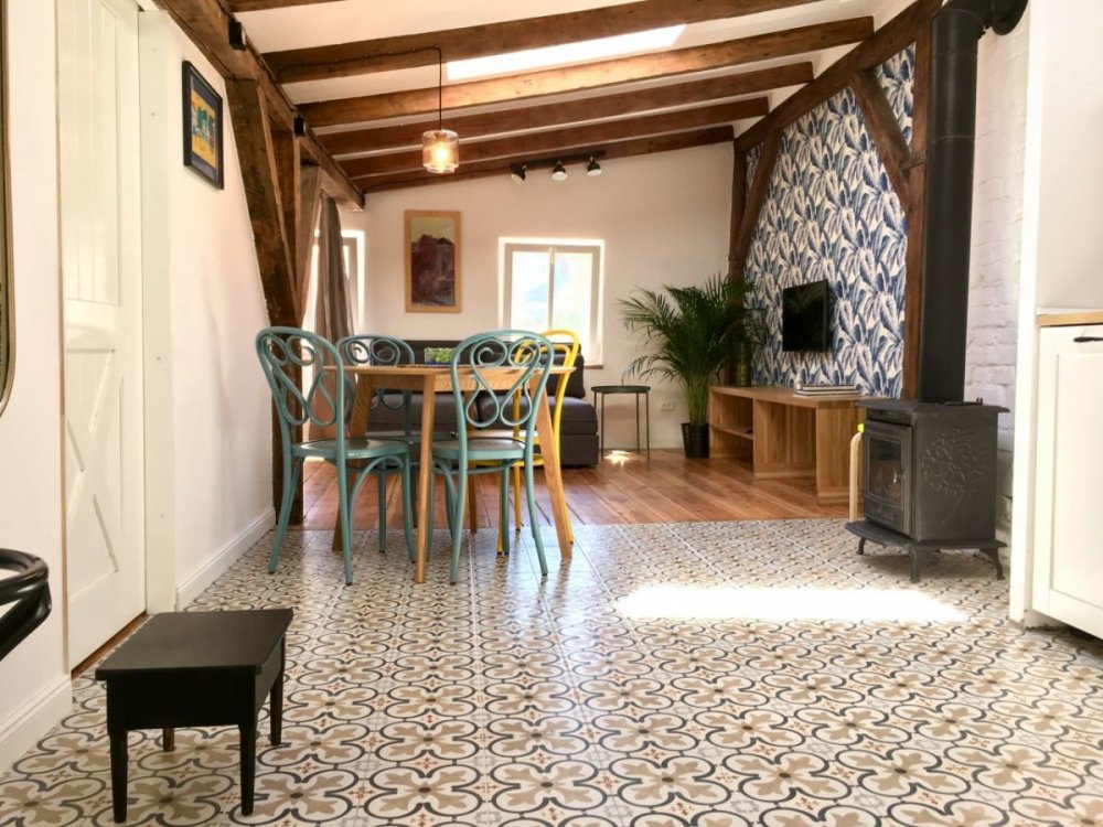 Nasz klimatyczny apartament usytuowany jest na poddaszu, czesciowa posiada skosy ( 3