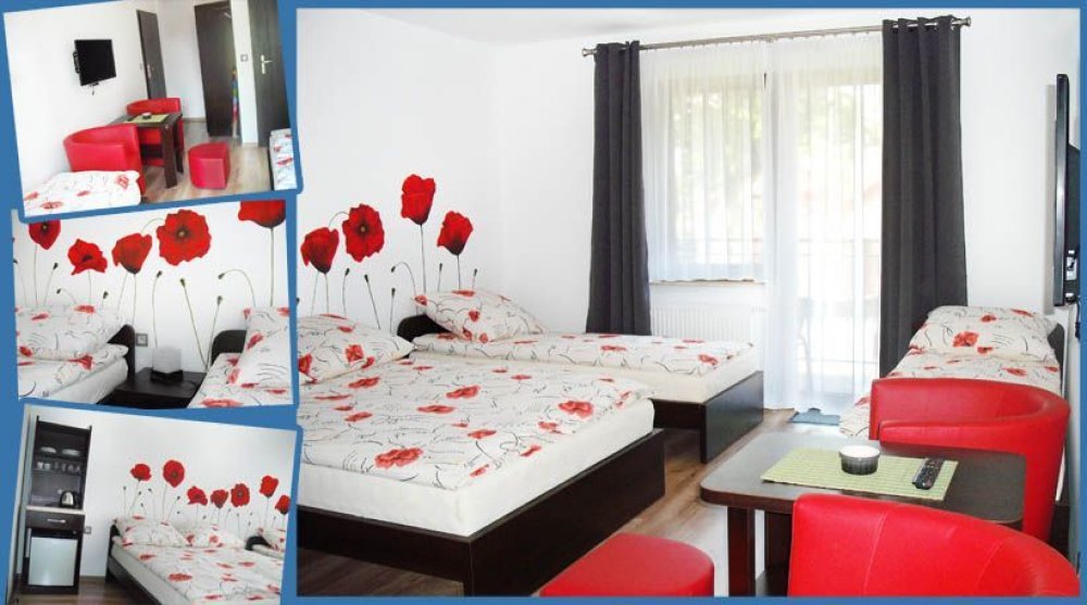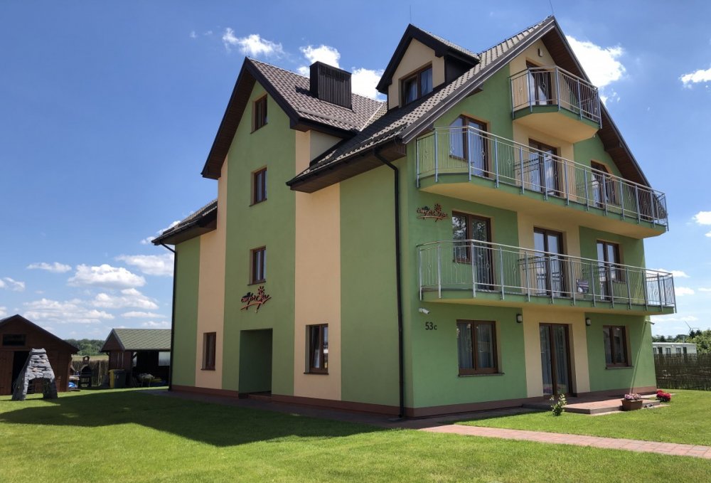 Wszystkie pokoje posiadają w pełni wyposażony aneks z lodówką hotelarską, czajnikiem, 32" LED TV oraz dostęp do szerokopasmowego Wi - Fi. W dbałości o komfort wypoczynku zapewniamy wygodne łoża małżeńskie, jak również pojedyncze łóżka. Na parterze budynku znajduje się przestronna, ogólnodostępna sala wraz z dużym TV i zabawkami dla najmłodszych, a na piętrach kuchnie z pełnym wyposażeniem do dyspozycji gości naszych gości:)