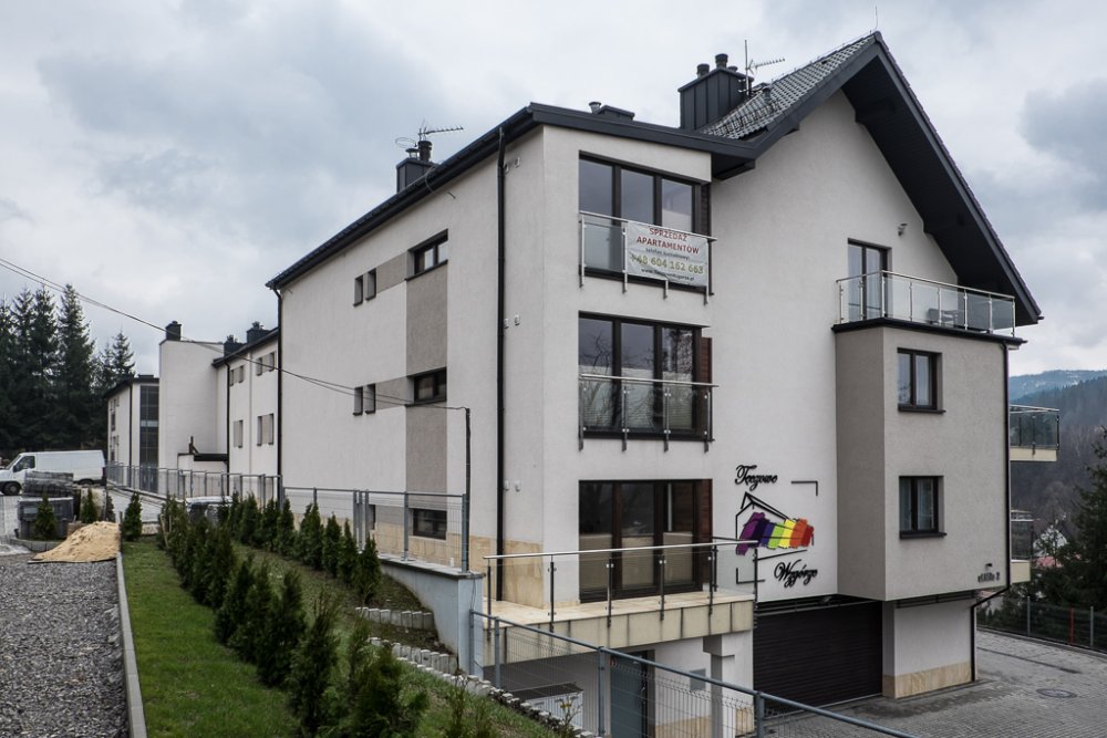 Nasz Apartament to część nowoczesnego kompleksu Tęczowe Wzgórze w Wiśle przy ulicy Miłej 2. Budynek położony jest na wzniesieniu, a nasz Apartament mieści się na 2 piętrze, dzięki czemu nasi Goście mogą podziwiać malowniczy widok na Beskidy. Jednocześnie kompleks mieści się blisko centrum Wisły oraz stoków narciarskich.